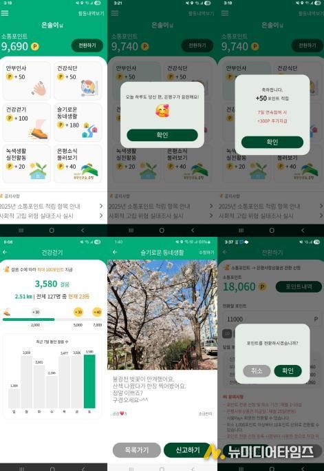 또한 출석체크, 식사기록, 걷기, 소통게시판 등 다양한 콘텐츠에 참여해 최대 5만 포인트를 적립할 수 있으며, 포인트는 1포인트당 1원으로 전환해 은평사랑상품권으로 사용할 수 있다. 이를 통해 참여자의 자기돌봄 습관 형성과 지역경제 활성화 효과를 동시에 도울 예정이다.