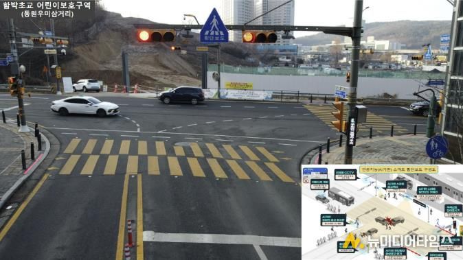 용인특례시는 처인구 역북동 함박초등학교 앞 어린이보호구역에 인공지능(AI) 기반 ‘스마트 횡단보도 시스템’을 구축하고, 본격 운영을 시작했다고 24일 밝혔다.