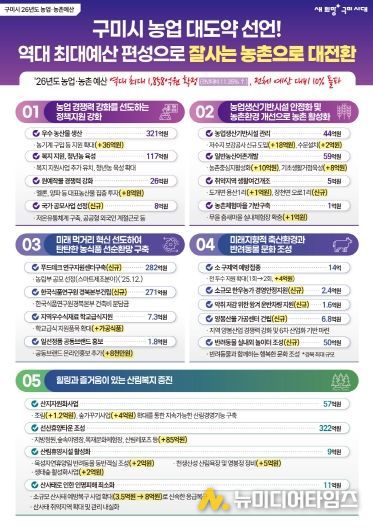 김장호 구미시장은 “농업과 농촌은 구미의 지속 가능한 성장을 떠받치는 중요한 기반”이라며 “이번 예산이 농업인의 경영 안정과 농촌 경쟁력 강화에 실질적인 도움이 되기를 기대한다”고 말했다.