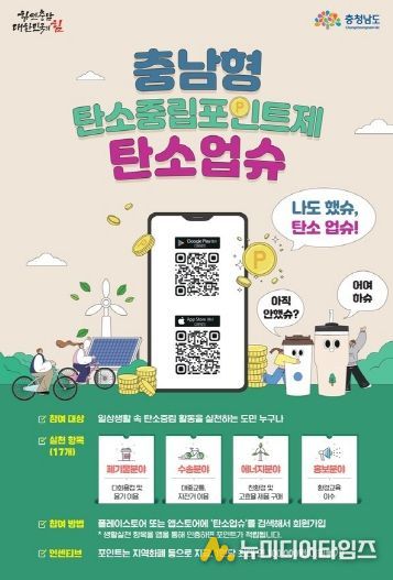 ‘탄소업슈’는 충청남도 전역에서 탄소중립 달성을 위해 추진하는 제도로, 폐기물·수송·에너지·홍보 등 4개 분야 17개 항목으로 운영되고 있다.