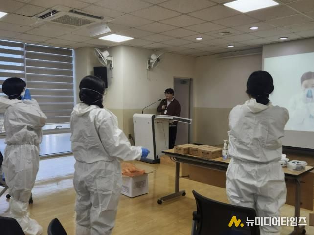 이번 교육은 감염병 발생 시 신속하고 안전한 대응을 위해 마련됐으며, 보건소 직원들이 개인보호구(Level D 보호복, N95 마스크, 고글, 덧신 등)의 착용과 탈의 과정을 직접 실습하는 방식으로 진행됐다.