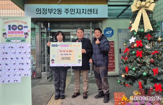 의정부시 의정부2동주민센터는 12월 23일 한국자유총연맹 의정부2동위원회가 ‘100일간 사랑릴레이 배턴 잇기’에 동참해 취약계층을 위한 성금 20만 원을 전달했다고 밝혔다.