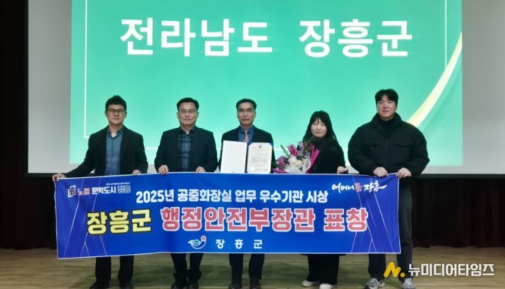장흥군이 공중화장실 관리·운영 업무에 대한 공로를 인정받아 23일 행정안전부로부터 공중화장실 업무 유공 기관표창을 수상했다.