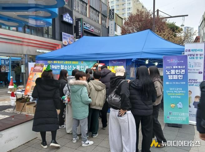 충청북도교육청은 24일, 청주 성안길 일대에서 겨울방학을 맞아 아르바이트 등 노동 현장에 나서는 청소년들을 보호하기 위해 2025 청소년 노동인권 홍보 캠페인을 실시했다.