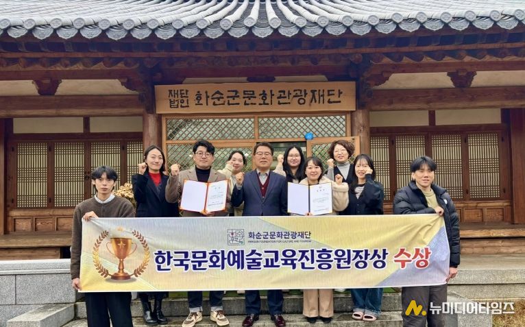 (재)화순군문화관광재단(이사장 구복규)은 24일 2025년 전국 문화재단 평가에서 지역문화예술 발전에 공로가 있는 기관으로 선정돼 한국문화예술교육진흥원장상(기관 표창)을 수상했다고 밝혔다.