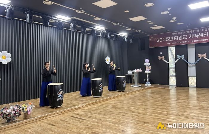 단양군가족센터는 지난 18일, 센터 연간 성과보고회에서 결혼이주여성 자조활동 프로그램 '소리의 만남' 참여자들이 준비한 식전무대 난타공연을 성공적으로 진행했다.
