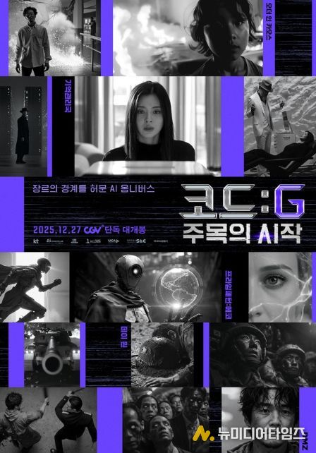 생성형 AI와 인간 창작자의 협업으로 탄생한 옴니버스 영화 '코드: G 주목의 시작'이 AI 배우들의 개봉 인사 영상을 공개하며 개봉을 향한 기대감을 더욱 높이고 있다.[감독 : 김주신, 김영기, 권한슬/홍기선, 송영윤, 김광식 | 제작: MBC C&I/ 디 에이프 스쿼드/ 스튜디오프리윌루전/ MCA | 공동기획/투자 : KT | 배급 : KT스튜디오지니, 영화특별시SMC]