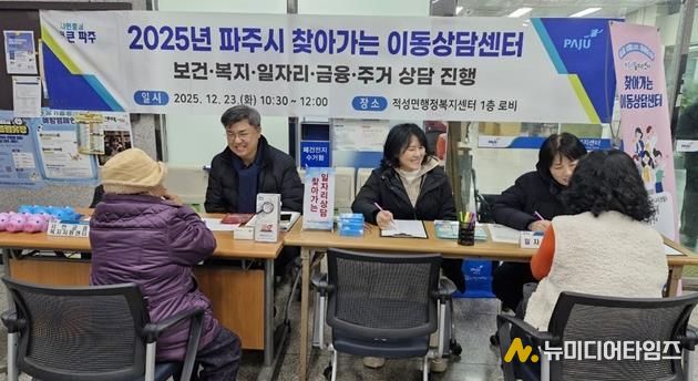 파주시는 지난 23일 적성면 행정복지센터에서 정보 취약계층을 대상으로 보건, 복지, 일자리, 금융, 주거 등 5개 분야를 한자리에서 상담하는 ‘찾아가는 이동상담센터’를 운영했다고 밝혔다.