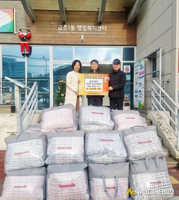 파주시 금촌1동은 지난 24일 금촌5일장 금정로 상인연합회로부터 375만 원 상당의 이불 30채를 기탁 받았다고 밝혔다.