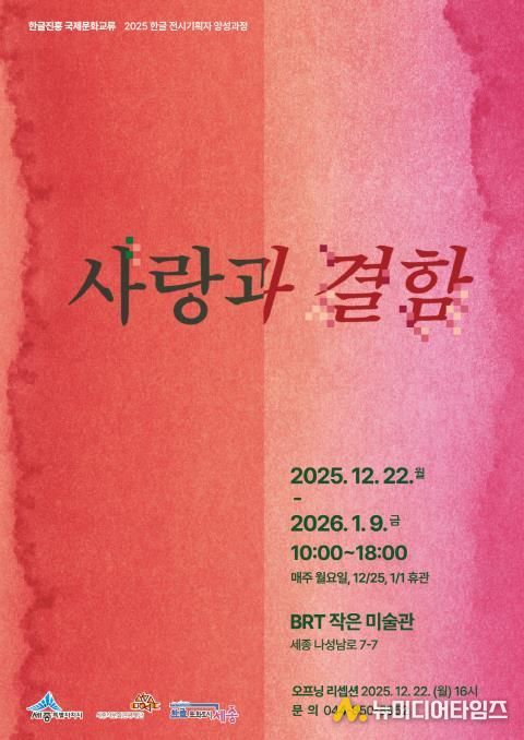 세종시문화관광재단은 오는 1월 9일까지 BRT작은미술관에서 한글 전시기획자 양성과정 수료전시 '사랑과 결함'을 개최한다.