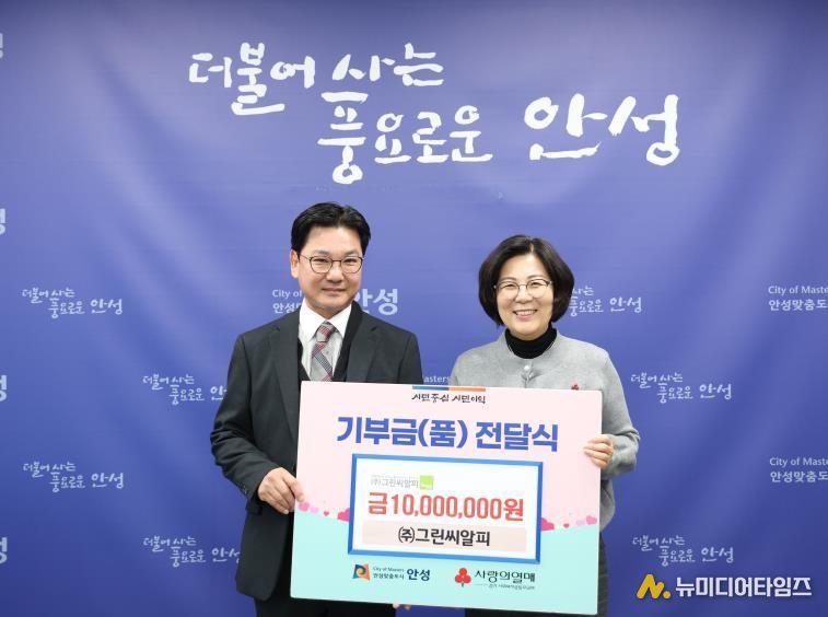 안성시는 지난 12월 24일, ㈜그린씨알피로부터 1,000만 원 기부금을 전달받았다고 밝혔다.
