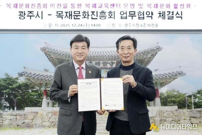 광주시는 지난 24일 시청에서 목재문화진흥회와 ‘탄소중립 목재교육종합센터’의 성공적인 운영과 목재문화 활성화를 위한 업무협약(MOU)을 체결했다.