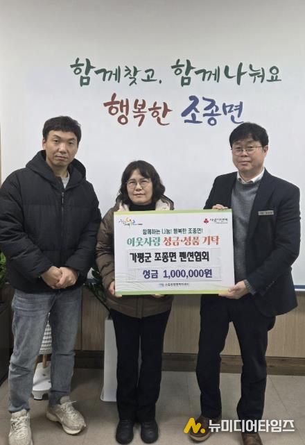 가평군 조종면 펜션협회는 지난 24일 조종면 행정복지센터를 방문해 이웃돕기 성금 100만원을 기탁하며 온기를 더했다.
