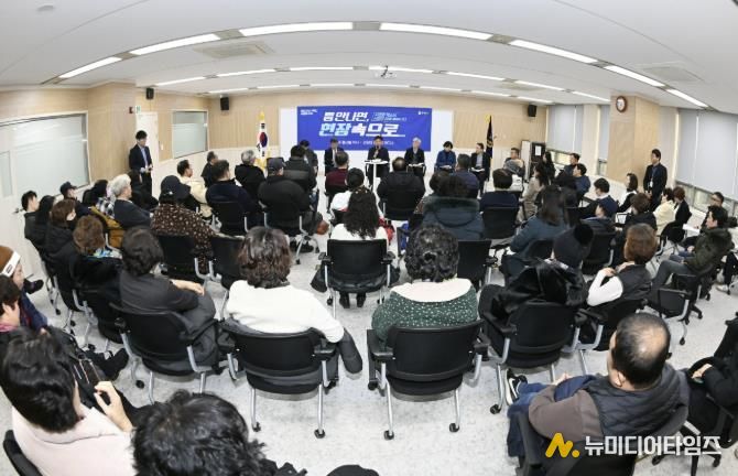 부천시는 24일 오정구청 대회의실에서 제7차 ‘틈만나면, 현장속으로’를 열고, 경인고속도로 인근 소규모주택정비사업 구역의 방음벽 설치 민원 해결을 위한 주민 의견을 청취했다.
