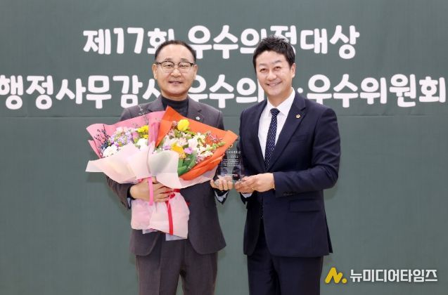 경기도의회 건설교통위원회 김영민 의원(국민의힘, 용인2)이 26일 경기도의회 대회의실에서 대한민국시도의회의장협의회가 수여하는 ‘제17회 우수의정대상’을 수상했다.