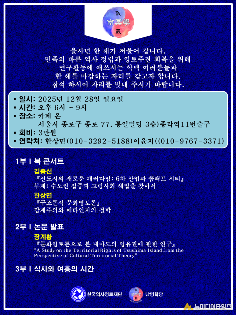 한국역사영토재단과 남명학당이 공동 주최하는 연말 학술·문화행사가 열린다.