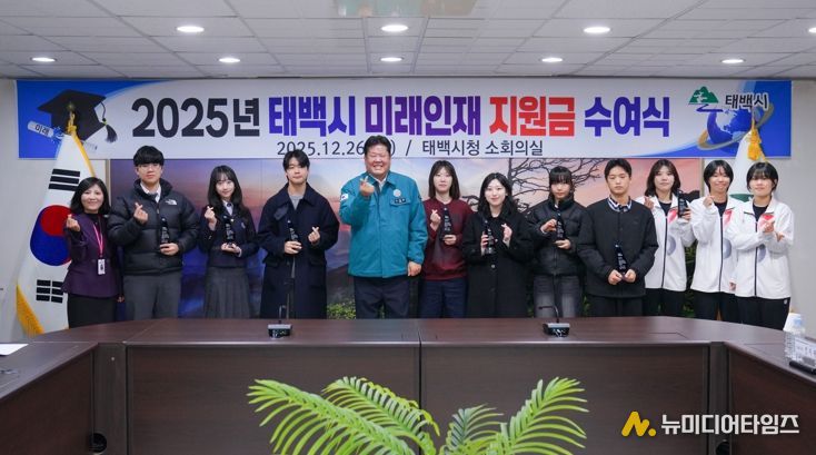 태백시 지난 26일 시청 소회의실에서 2025년 태백시 미래인재 신규 선발자와 그 가족 등이 참석한 가운데 미래인재 지원금 및 인증패 수여식을 개최했다.