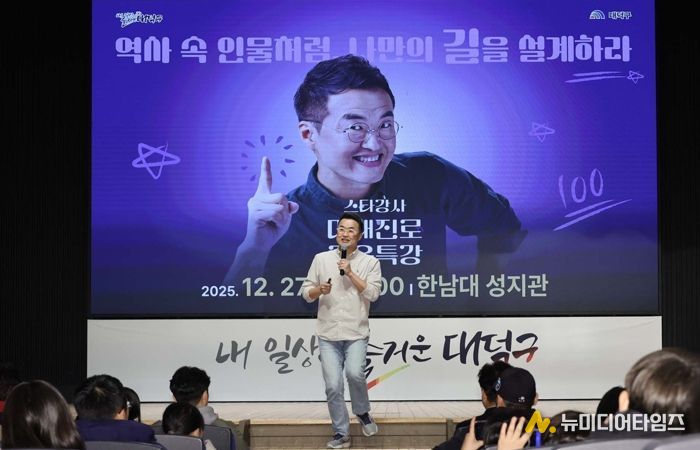 대전 대덕구는 지난 27일 한남대학교 성지관에서 한국사 스타강사 최태성 씨를 초청해 ‘미래진로 교육특강’을 성황리에 마무리했다.