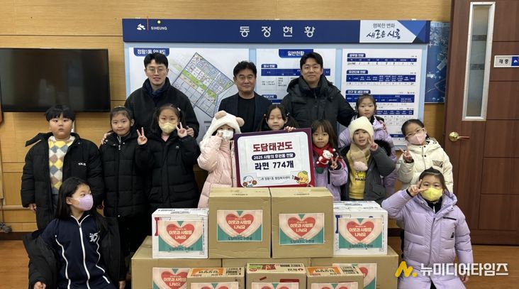 도담태권도는 지난 26일, 정왕1동 행정복지센터에 방문해 정왕1동 저소득 가구를 위한 라면 774개를 전달했다.