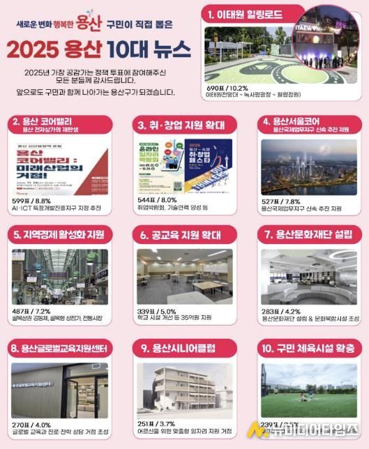서울 용산구는 구민 참여로 선정한 ‘2025년 용산구 10대 뉴스’ 투표 결과를 발표했다.