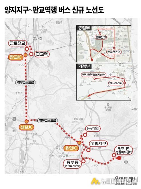 용인 양지지구를 출발해 고림동과 둔전역을 거쳐 성남 판교역까지 운행하는 버스 노선이 확정됐다.