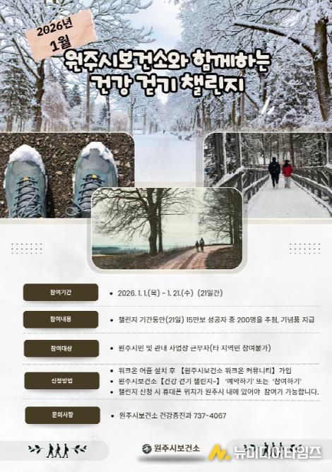 원주시보건소는 새해를 맞아 보건소와 함께하는 1월 건강 걷기 챌린지를 운영한다.