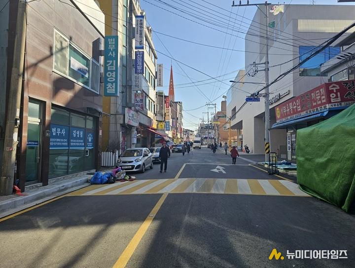 먼저, ‘금정로 가로환경개선사업’은 금촌2동 제2지구 주택재개발정비사업과 연계해 추진됐다. 도로 배수를 원활히 하기 위해 상가 측면에 엘(L)형 측구와 우수받이를 교체했으며, 차량과 보행자의 통행 안전을 확보하기 위해 발광다이오드(LED) 가로등 교체, 도로표지병 설치, 아스팔트콘크리트 재포장을 완료했다.