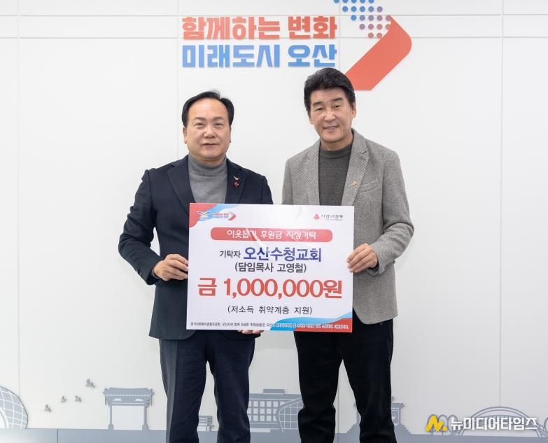 오산시는 지난 26일 오산수청교회가 희망2026나눔캠페인에 동참해 관내 취약계층 지원을 위한 성금 100만 원을 기탁했다고 밝혔다.