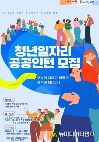 이천시는 2026년 1월 5일부터 1월 16일까지 ‘청년일자리 공공인턴사업’의 상반기 참여자 47명을 모집한다.