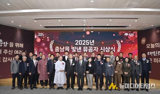 도는 29일 도청 대회의실에서 김태흠 지사와 수상자 등 100여 명이 참석한 가운데 2025년 충남을 빛낸 유공자 시상식을 개최했다.
