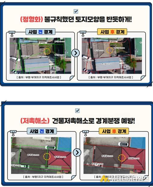 그 결과 ▲형상이 불규칙한 토지 2만 4,028필지를 반듯한 형태로 정형화했고 ▲건축물이 타인의 토지를 침범해 분쟁 소지가 있던 1만 1,474필지의 경계를 바로잡았다.