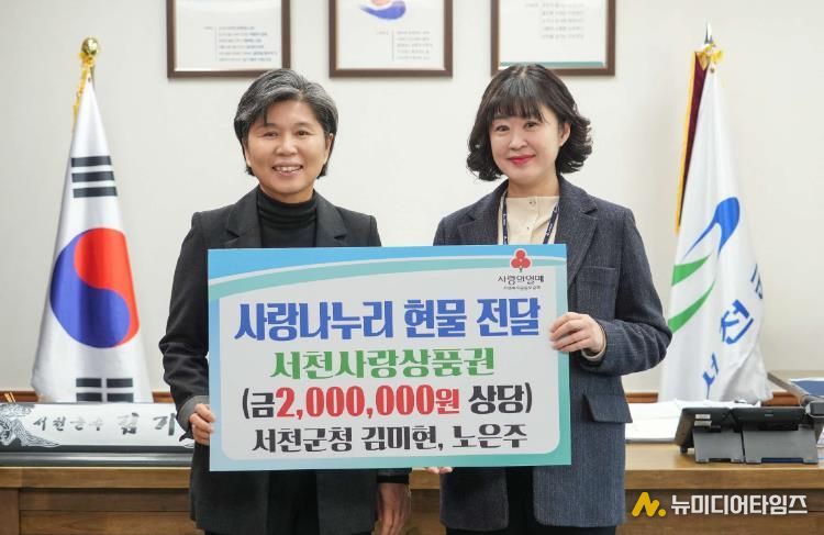 서천군청 자치행정과 노은주 행정인사팀장과 인구정책과 김미현 노인복지팀장이 최근 한 시상식에서 받은 상금 전액을 사랑나누리 현물로 기탁하며 연말 이웃사랑 실천에 동참했다.
