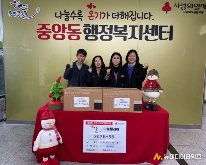 오산시 중앙동 행정복지센터는 지난 29일 오산동에 위치한 진성교회가 관내 경로당을 위해 전자레인지 2대를 기탁하며 지역사회에 따뜻한 온기를 전했다고 밝혔다.