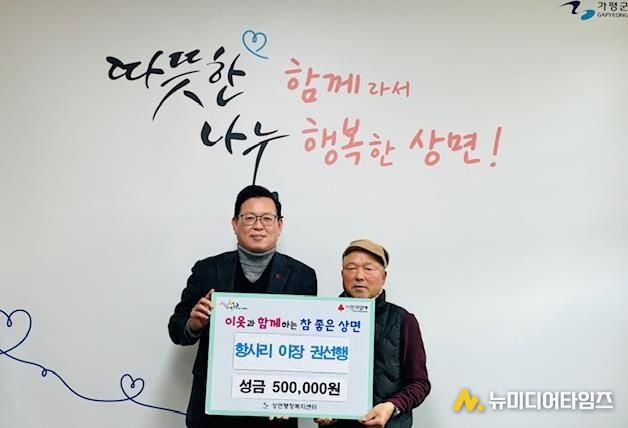 매년 성금 기부를 통해 나눔을 실천해 온 가평군 상면 항사리 권선행 이장이 올해도 변함없이 상면 행정복지센터에 성금 50만원을 기탁했다.