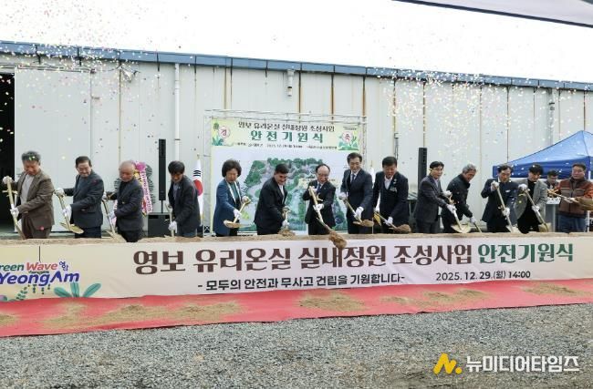 영암군이 29일 덕진면에서 면민 등 100여 명이 참석한 가운데 ‘영보 유리온실 정원 조성사업 착공식’을 열었다.