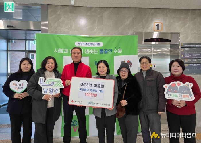 남양주시는 30일 수동면 지둔3리 마을회가 지역 내 어려운 이웃을 위한 후원금 100만 원을 경기사회복지공동모금회를 통해 수동면 지역사회보장협의체에 지정 기탁했다고 밝혔다.