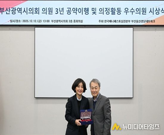 여기에 더해 (사)대한민국유권자총연맹이 선정한 ‘2025년도 의정활동 우수의원’ 의정대상까지 거머쥐며, 주민과의 약속인 공약이행은 물론 입법 전문성, 복지 정책 등 의정활동 전반에서 탁월한 성과를 공식적으로 인정받았다.