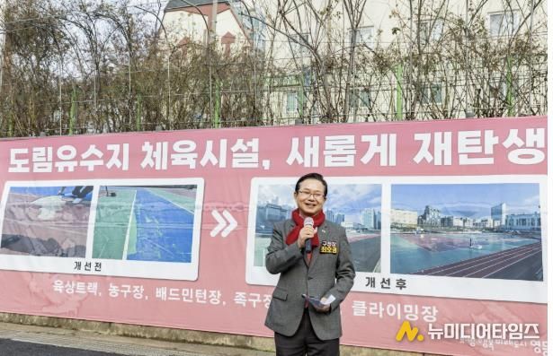 도림유수지 야외체육시설은 2005년 조성 이후 도림동을 대표하는 생활체육 공간으로 자리매김하며 많은 구민이 이용해 왔다. 다만, 오랜 세월이 지나면서 바닥이 낡고 갈라져 사용이 불편하고 안전사고 문제도 있었다.