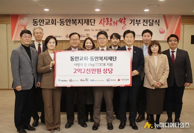 ‘사랑의 쌀’ 기부전달식은 30일 11시 서울시청에서 진행됐으며 김병민 서울시 정무부시장, 김형준 동안복지재단 대표이사, 김현훈 서울시사회복지협의회장, 신혜영 서울사회복지공동모금회 사무처장 등이 참석했다.