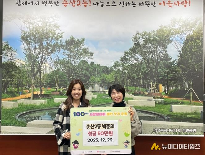의정부시 송산2동주민센터는 12월 29일 송산2동 지역사회보장협의체 박준희 부위원장이 어려운 이웃을 돕기 위해 성금 50만 원을 기탁했다고 밝혔다.