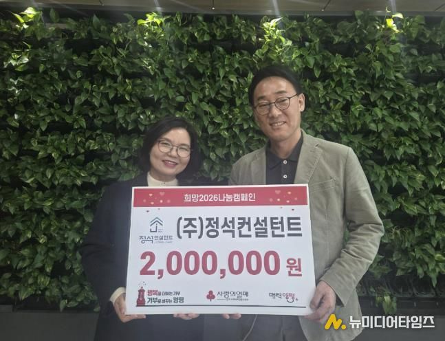 정연태 ㈜정석컨설턴트 대표는 “도시계획 분야에 종사하는 기업으로서 현장에서 접하는 지역의 생활 여건과 어려움에 관심을 가져왔다”며 “추운 겨울을 앞두고 도움이 필요한 이웃들에게 조금이나마 온기가 전해지기를 바라는 마음으로 기탁을 결정했다”고 말했다.