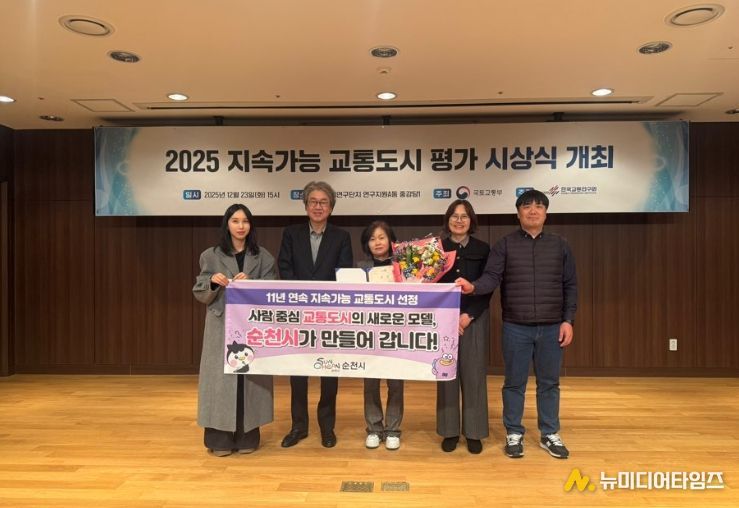 순천시가 국토교통부 주관 2025년 지속가능 교통도시 평가에서 인구 30만 미만 ~ 10만 이상 ‘라 그룹’ 내 우수 지자체로 선정되며, 11년 연속 우수 평가를 받는 성과를 거뒀다.