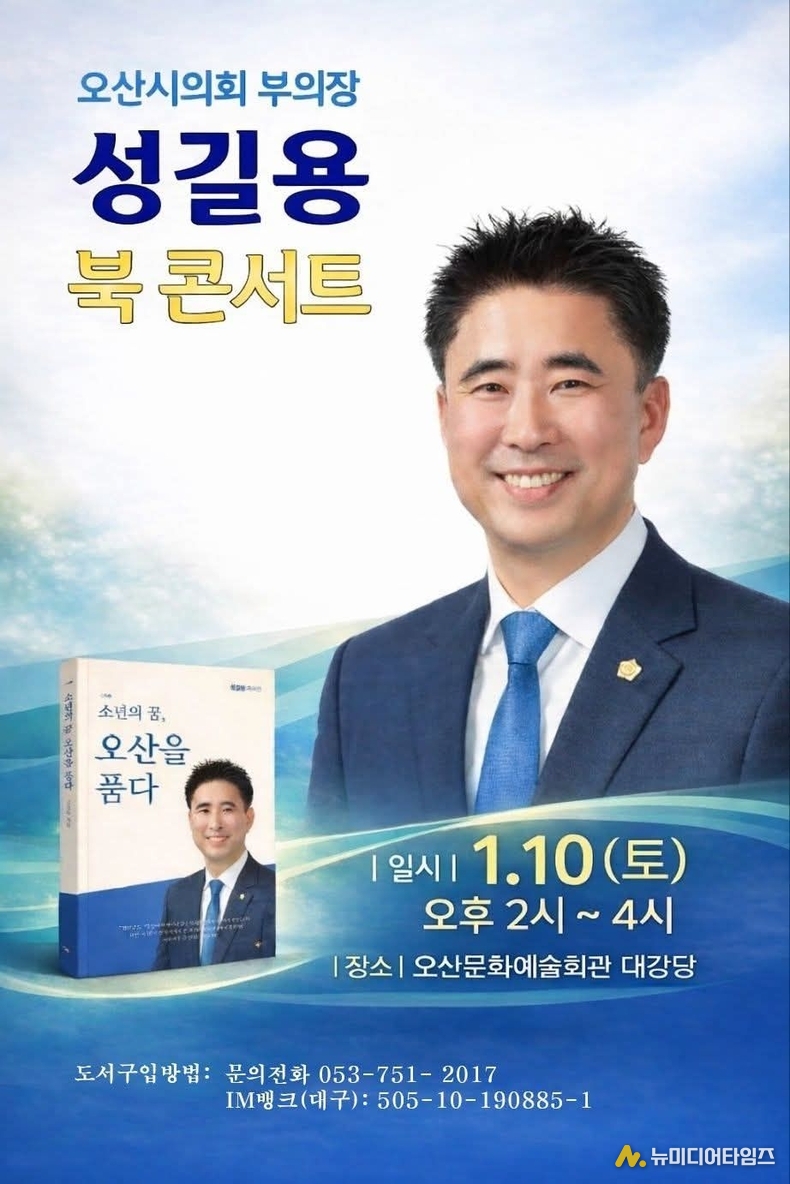 오산시의회 성길용 부의장이 오산의 과거와 미래 비전을 공유하는 북콘서트를 개최한다. '소년의 꿈 오산을 품다'를 주제로 열리는 이번 행사는 오는 2026년 1월 10일 오후 2시 오산문화예술회관 대강당에서 진행된다.