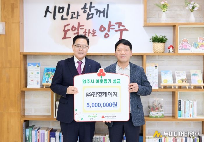 양주시가 31일 농업회사법인 ㈜진영케이지로부터 연말을 맞아 이웃돕기 성금 500만 원을 기탁받았다.