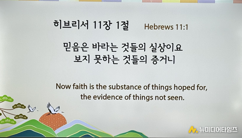 그는 "친구 사이에, 가족 사이에, 이웃 사이에 믿음이 필요한 것입니다. 여러분 서로 믿고, 믿음으로 얻는 것을 아주 기뻐하는 여러분들이 되시기를 바랍니다"라며 "하나님은 우리에게 많은 것을 약속하셨습니다. 하나님은 우리에게 큰 일을 하셨습니다. 그 아들을 보내어 우리를 구원하실 정도로 큰 일을 하셨습니다"라고 말했다.
