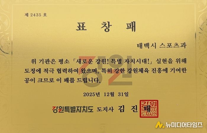 태백시 관계자는 “이번 기관표창은 시민 여러분의 적극적인 참여와 관심, 그리고 직원들의 노력이 함께 만들어낸 값진 성과”라며, “앞으로도 시민 모두가 즐길 수 있는 체육 환경 조성과 지역 체육 발전을 위해 최선을 다하겠다”고 말했다.