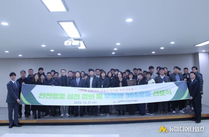 동해시시설관리공단은 지난 12월 31일 근로자복지회관 2층 대회의실에서 전 직원이 참여한 가운데 '안전경영 실천 결의 및 2026 무재해 365운동 선포식'을 개최했다.
