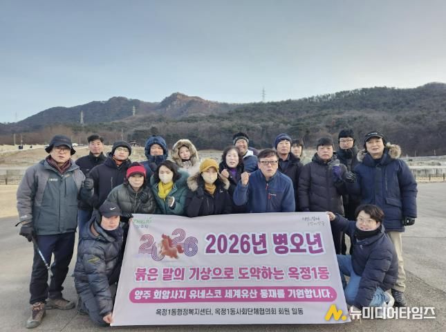 양주시 옥정1동이 2026년 병오년 새해를 맞아 양주회암사지 유네스코 등재를 기원하며 회암사지 일원에서 ‘2026년 옥정1동 해맞이 행사’를 개최했다.