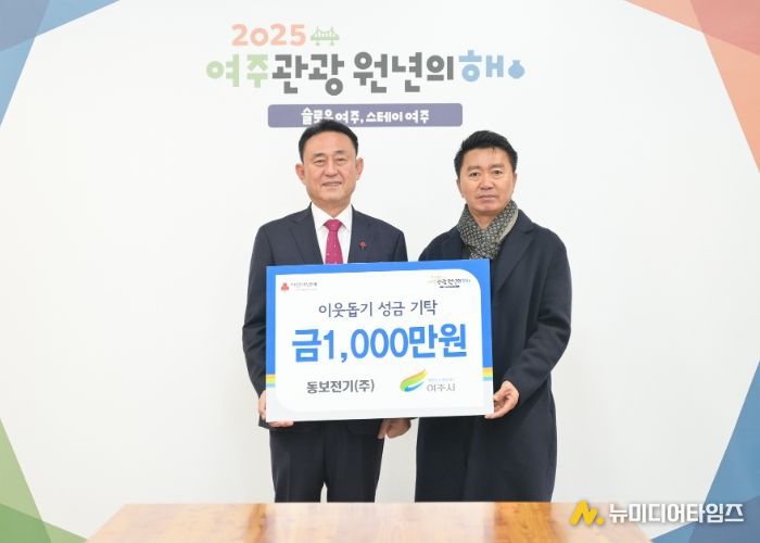 지난 30일 동보전기 및 주식회사 부광에너지는 여주시를 방문하여 관내 저소득층을 위한 이웃돕기 성금으로 각 1,000만원을 기탁했다