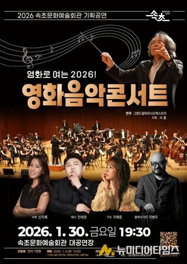 속초시가 2026년 새해를 맞아 1월 30일 오후 7시 30분, 속초문화예술회관 대공연장에서 ‘영화로 여는 2026! 영화음악콘서트’를 개최한다.